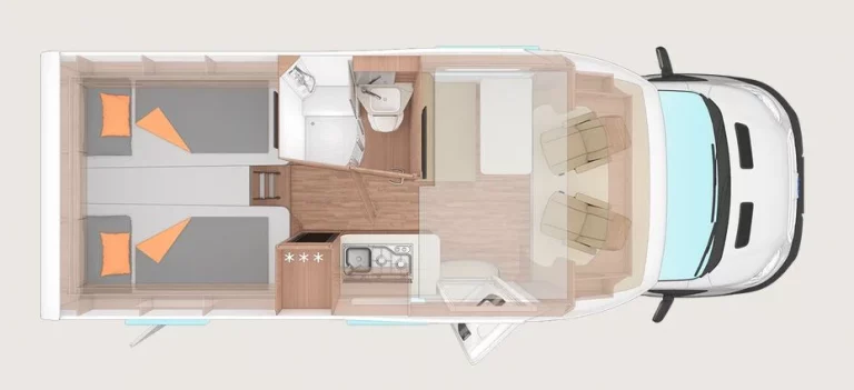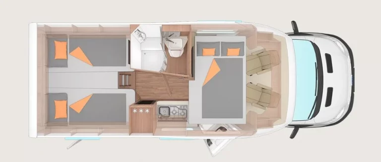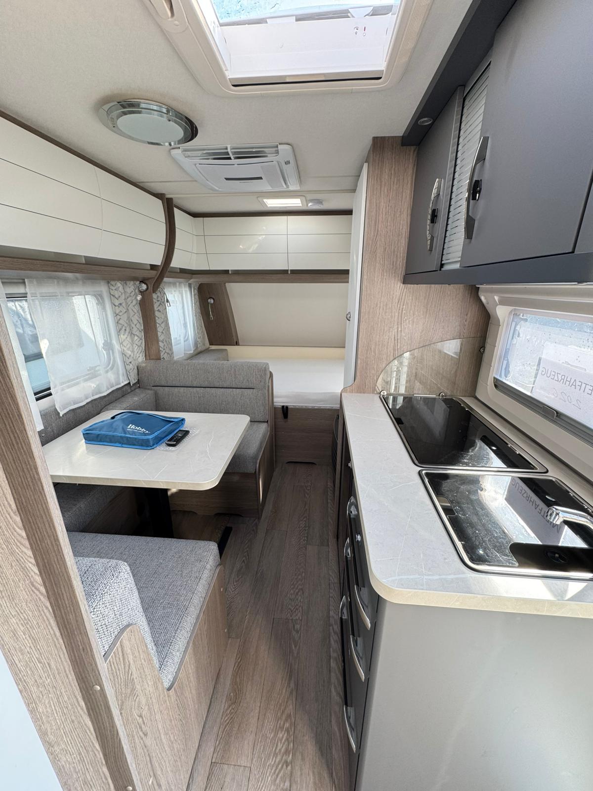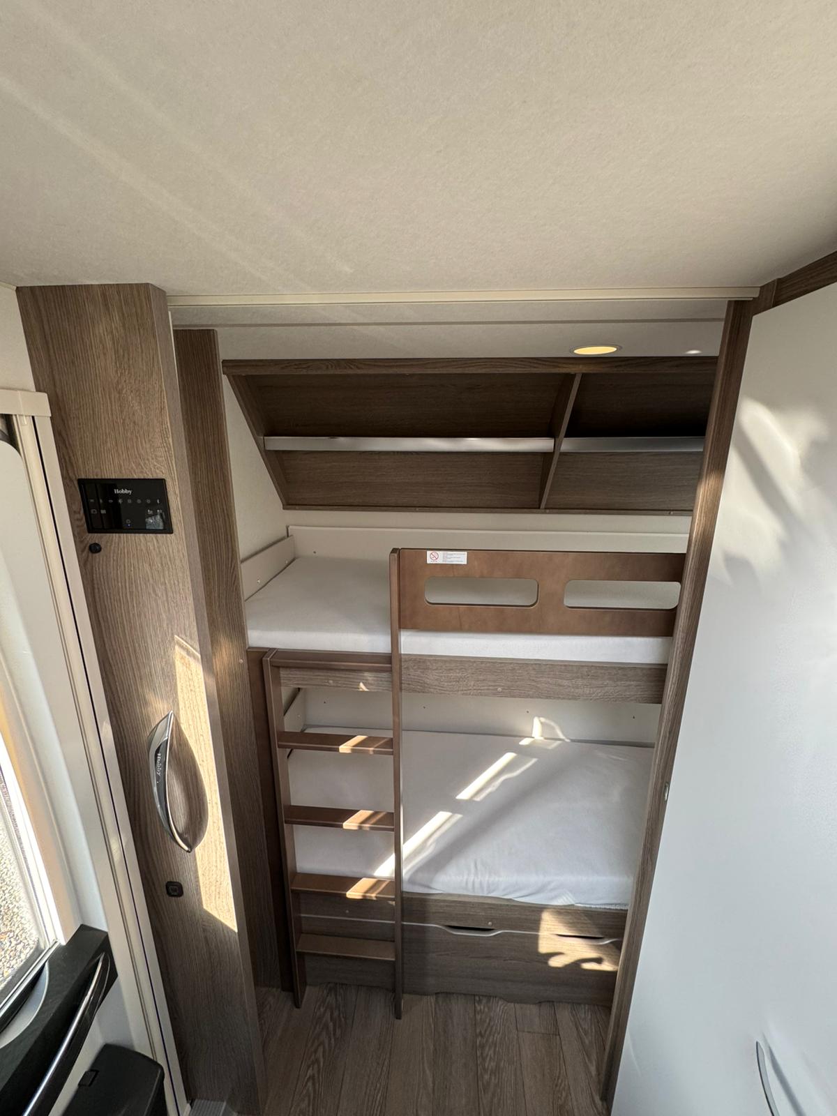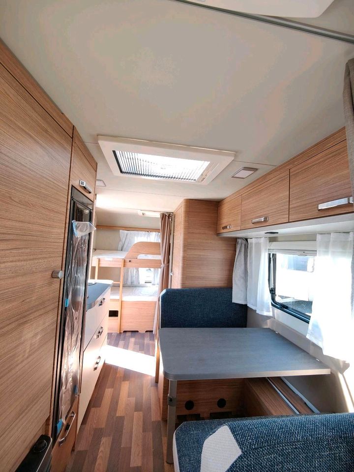 bis zu 5 Schlafplätze (Querbett, Sitzgruppe, Etagenbetten)